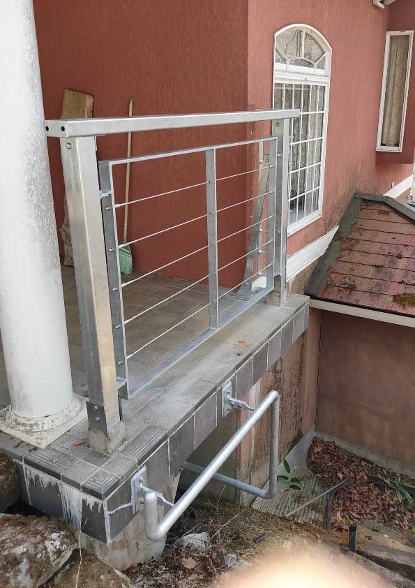 • 手摺柱・笠木は角パイプ内側部はフラットバー+ワイヤー