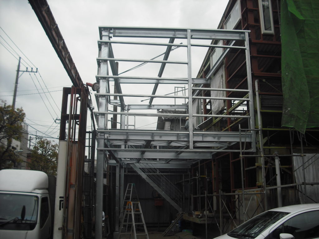 • 既存鉄骨補強/新設2F建てS造り